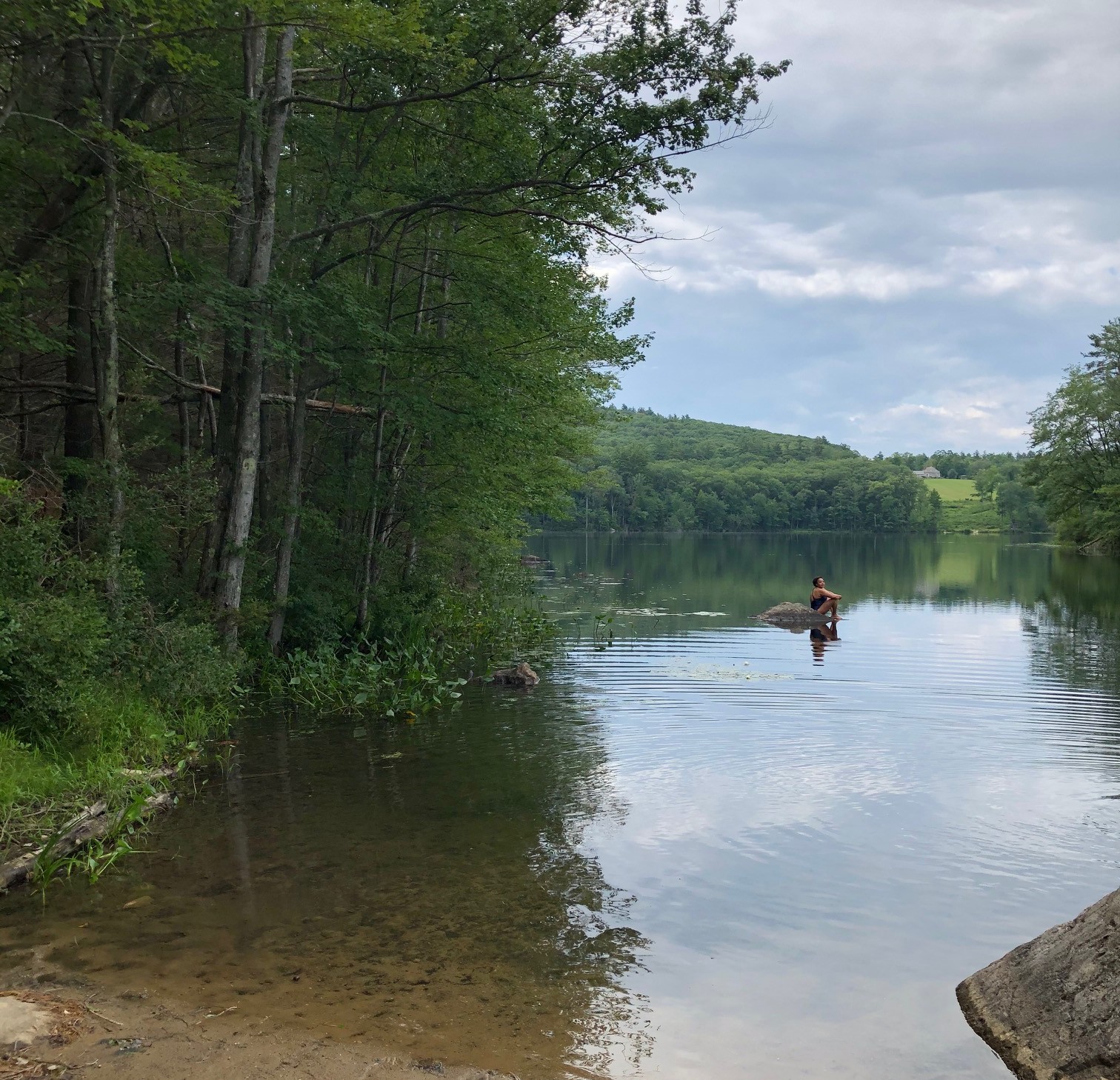 Tamara sitting on a rock at Nelson Pond in Nelson, NH
